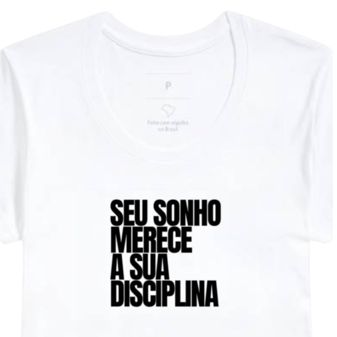 Mais do que uma estampa, esta camiseta é um lembrete diário do poder da disciplina na jornada de uma empreendedora. A Camiseta "Seu Sonho Merece A Sua Disciplina" da Veste Visão foi criada para mulheres que sabem que o sucesso é construído com foco, persistência e a ação constante. Vista essa inspiração e transforme seus objetivos em realidade.
